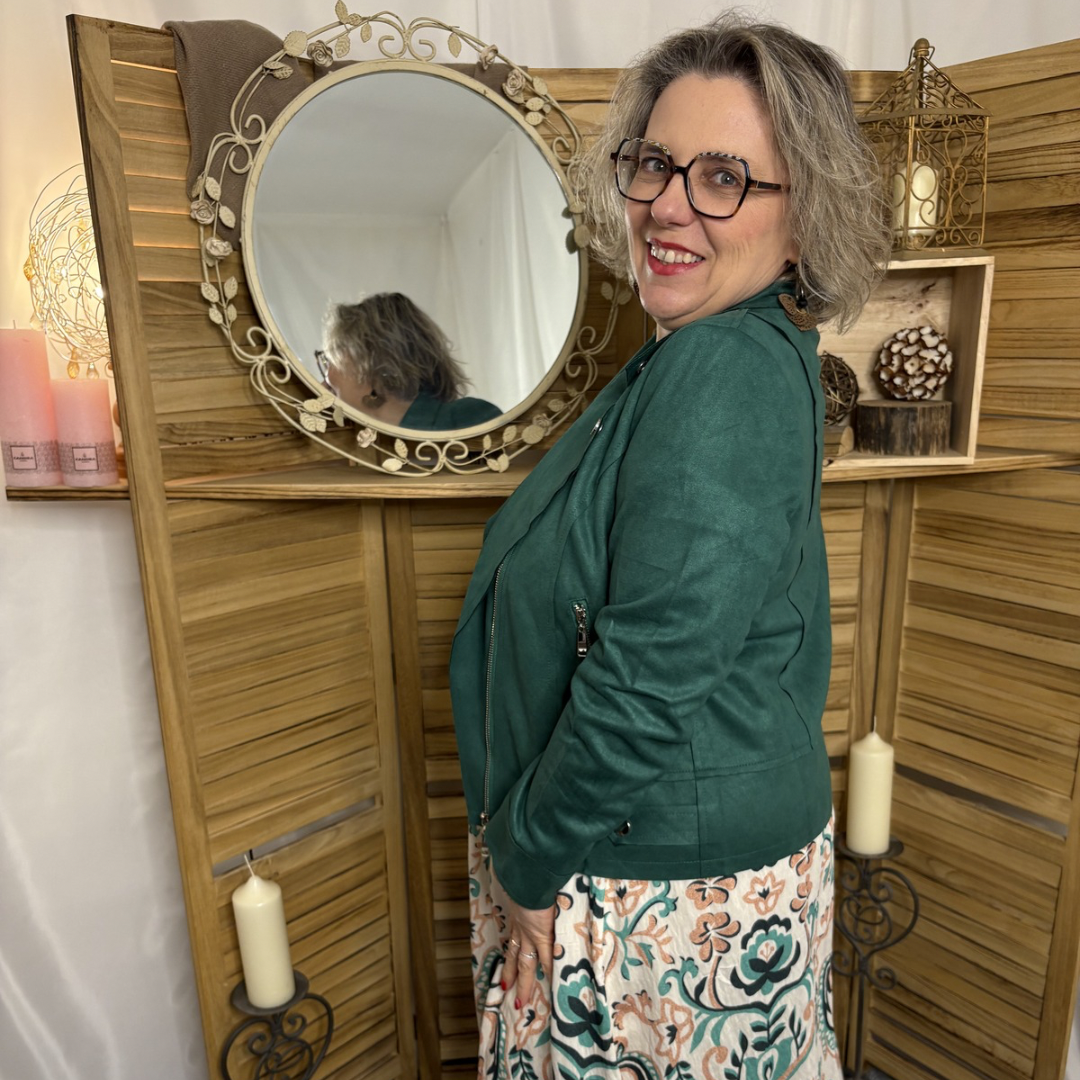 Corinne mesure 1m65 et porte habituellement la taille 46 (XL pour se modèle)