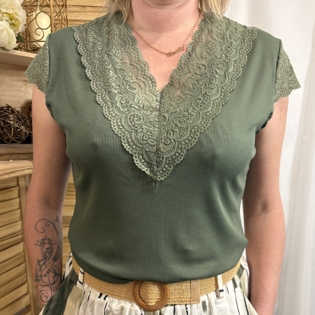 -Manche courte en dentelle